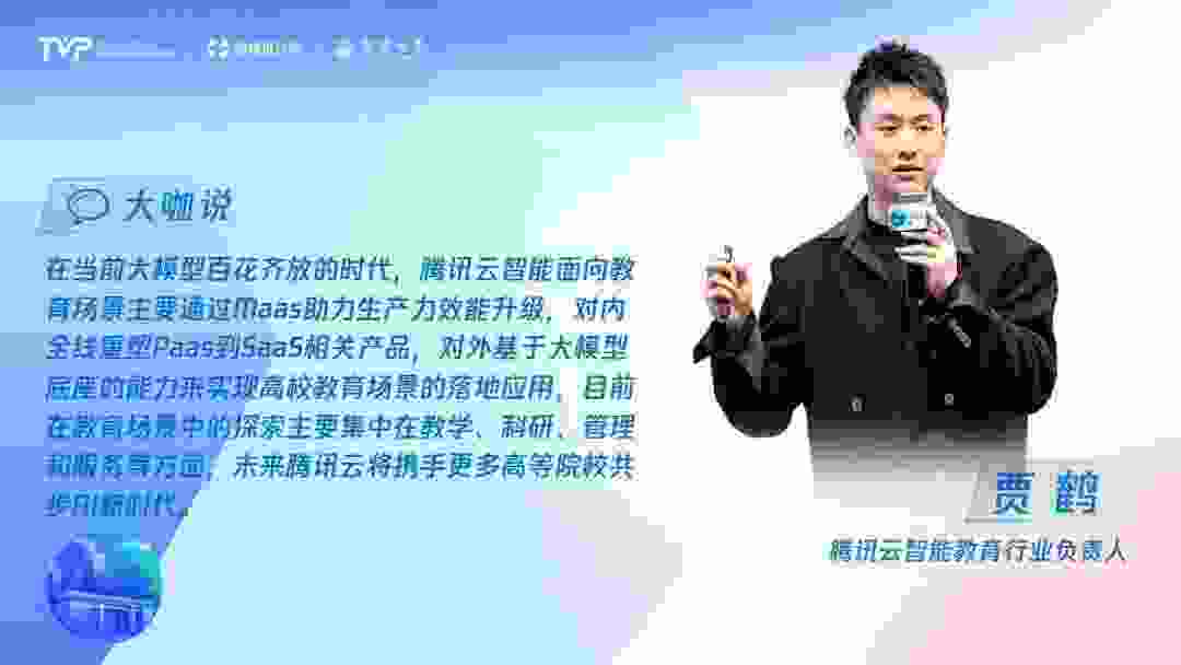腾讯云智能教育行业负责人 贾鹤老师带来《重塑智能时代生产力的应用实践分享》主题演讲。
