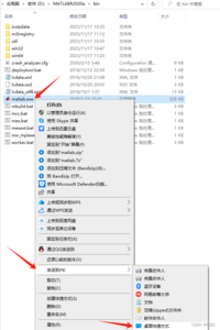 step3:WIN10系统中不自动生成桌面图标,返回软件安装目录文件夹,如D:\MATLAB2020a,进入\bin目录下找到matalb.exe,鼠标右击选择【发送到】→【桌面快捷方式】,生成桌面图标,方便以后打开软件