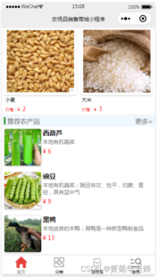 农产品信息: 点击到农产品详情页面,可以查看农产品介绍、图片、价格、销售等、详情、已购买用户的评论列表。