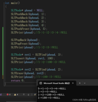 int main(){SLTNode* phead = NULL;SLTPushBack(&phead, 1);SLTPushBack(&phead, 2);SLTPushBack(&phead, 3);SLTPushBack(&phead, 4);SLTPushFront(&phead, 5);SLTPrint(phead);//5->1->2->3->4->NULLSLTPopBack(&phead);SLTPopFront(&phead);SLTPrint(phead);//1->2->3->NULLSLTNode* ret1 = SLTFind(phead, 3);SLTInsert(&phead, ret1, 100);SLTPrint(phead);//1->2->100->3->NULLSLTNode* ret2 = SLTFind(phead, 2);SLTErase(&phead, ret2);SLTPrint(phead);//1->100->3->NULL SLTDestroy(phead);return 0;}