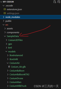 你可以通过以下步骤下载Cesium的示例数据集中的模型文件: