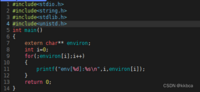 在头文件unistd.h中,有一个外置的二级指针environ变量,他指向着bash的环境变量表。