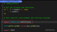 MYENV_TEST=hellolinux 但此时环境变量里是没有该变量的,我们需要通过export进行导入。
