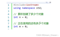 解析思路: 当我们要计算A这个类,累计创建了多少个对象(用n表示),正在使用的多少个对象(用m表示) 以之前的知识,我们首先会在全局定义两个变量
