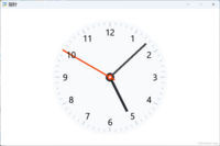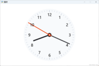 import pygletfrom math import sin, cos, piwBackground = (248, 250, 252, 255)gScales = (215, 220, 230, 255)rSecond = (240, 70, 20, 255)bMinute = (70, 71, 75, 255)bHour = (42, 43, 48, 255)wWhite = (255, 255, 255, 255)class Watch(pyglet.window.Window): def __init__(self, x, y, R=200, width=800, height=500, caption='指针'): super().__init__(width, height, caption=caption) pyglet.gl.glClearColor(1, 1, 1, 1) self.batch = pyglet.graphics.Batch() self.circle = pyglet.shapes.Circle(x, y, R*1.05, color=wBackground, batch=self.batch) self.scales = [pyglet.shapes.Line(x+R*cos(i*pi/30), y+R*sin(i*pi/30), x+R*0.95*cos(i*pi/30), y+0.95*R*sin(i*pi/30), width=3, color=gScales, batch=self.batch) for i in range(60)] for i,scale in enumerate(self.scales): if i%5==0: scale.width, scale.x2, scale.y2 = 5, x+R*0.92*cos(i*pi/30), y+0.92*R*sin(i*pi/30) self.labels = [pyglet.text.Label(str((2-i)%12+1), font_size=R*0.12, color=(0,0,0,255), x=x+R*0.82*cos(i*pi/6), y=y+0.82*R*sin(i*pi/6)-R*0.06, anchor_x='center', batch=self.batch) for i in range(12)] self.circle1 = pyglet.shapes.Circle(x, y, R*0.08, color=bHour, batch=self.batch) self.hour = pyglet.shapes.Line(x, y, x+R*0.7, y, width=9, color=bHour, batch=self.batch) self.minute = pyglet.shapes.Line(x, y, x+R*0.9, y, width=7, color=bMinute, batch=self.batch) self.second = pyglet.shapes.Line(x, y, x+R*1.1, y, width=5, color=rSecond, batch=self.batch) self.circle2 = pyglet.shapes.Circle(x, y, R*0.05, color=rSecond, batch=self.batch) self.circle3 = pyglet.shapes.Circle(x, y, R*0.02, color=wWhite, batch=self.batch) self.second.anchor_position = (R*0.1, 0) self.second.rotation = 210 self.minute.rotation = 24 self.hour.rotation = 160 def on_draw(self): self.clear() self.batch.draw() def run(self): pyglet.app.run()watch = Watch(400, 250)watch.run() 7. 联动时间