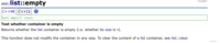 // list::empty#include <iostream>#include <list>int main (){ std::list<int> mylist; int sum (0); for (int i=1;i<=10;++i) mylist.push_back(i); while (!mylist.empty()) { sum += mylist.front(); mylist.pop_front(); } std::cout << "total: " << sum << '\n'; return 0;}