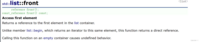 // list::front#include <iostream>#include <list>int main (){ std::list<int> mylist; mylist.push_back(77); mylist.push_back(22); // now front equals 77, and back 22 mylist.front() -= mylist.back(); std::cout << "mylist.front() is now " << mylist.front() << '\n'; return 0;}