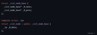 源码中创建了节点的模板,使用struct对节点进行封装处理。因为我们要访问节点,所以使用struct进行类定义而不是class,class默认类部成员都是私有,struct默认类部成员都是公有。