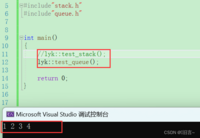 #include<iostream>#include<vector>#include<list>#include<deque>namespace lyk{template<class T, class continer = deque<T>>class queue{public:// 元素入队列void push(const T& val){con.push_back(val);}// 元素出队列void pop(){con.pop_front();}// 返回队列元素个数size_t size(){return con.size();}// 判断队列是否为空bool empty(){return con.empty();}// 返回队头元素的引用const T& front(){return con.front();}// 返回队头元素的引用const T& back(){return con.back();}private:continer con;};void test_queue(){//bit::queue<int> q;// // vector不能适配//bit::queue<int, vector<int>> q;lyk::queue<int, list<int>> q;q.push(1);q.push(2);q.push(3);q.push(4);while (!q.empty()){cout << q.front() << " ";q.pop();}cout << endl;}}