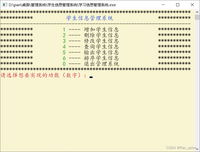 # include "student.h"int main(){StudentNode* s = NULL;int command; while (true){myMenu(); // 展示菜单 scanf("%d", &command); // 输入switch (command){case 1:// 增加学生信息AddStudent(&s);break;case 2:// 删除学生信息DeleteStudent(&s);break;case 3:// 修改学生信息UpdateStudent(&s);break;case 4:// 查询学生信息 (可按照姓名和学号) SearchStudent(&s);break;case 5:// 输出学生信息 (打印所有学生信息) MyPrint(s);break;case 6:// 排序学生信息 (按照学号升序排序) MySort(&s);break;case 0:// 退出管理系统exit();break;default : //输入有误error(); break;}system("pause"); }} student.h