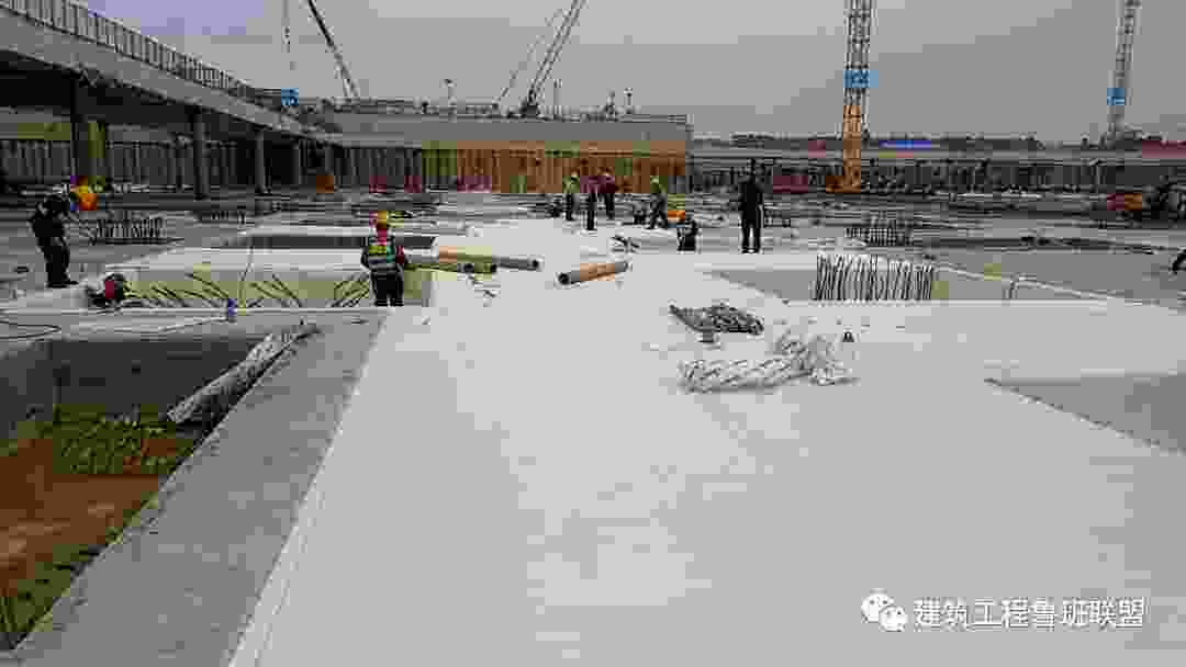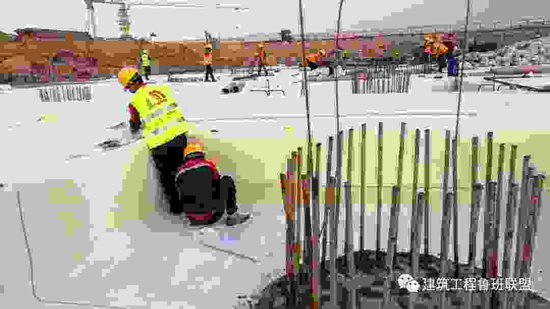 卷材铺贴完成后应注意保护,避免污泥、泥浆大面积污染(若有应采取冲洗等清除),尽可能减少后续钢筋焊接作业,如因工艺施工时,应采取防水层基面冲水润湿、加不燃防护材料等保护措施,避免焊接时烧穿防水层。