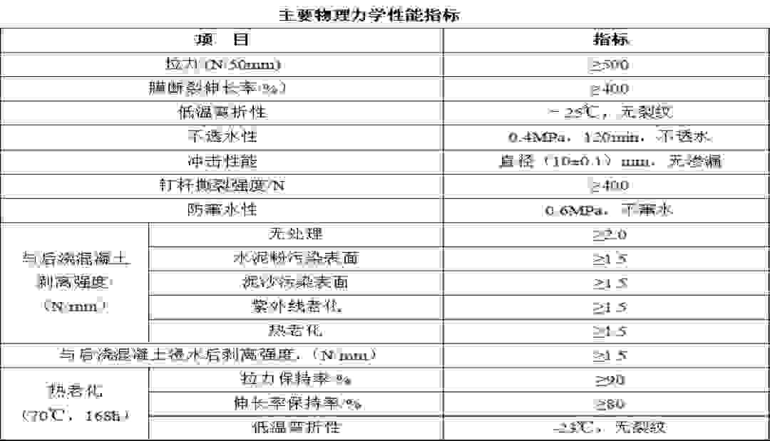 地下工程采用预铺反粘防水技术,材料是关键。“预铺反粘”采用的材料是高分子自粘胶膜防水卷材,该卷材系在一定厚度的高密度聚乙烯卷材基材上涂覆一层非沥青类高分子自粘胶层和耐候层复合制成的多层复合卷材,其特点是具有较高的断裂拉伸强度和撕裂强度,胶膜的耐水性好,一、二级的防水工程单层使用时也可达到防水要求。