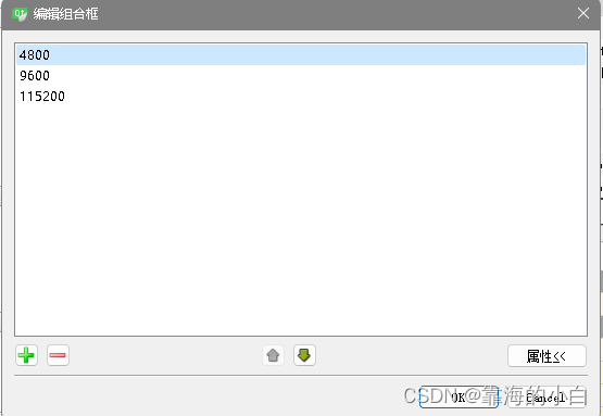 左下角是属性(即端口的选择和波特率检验位等): Combo box![]()
