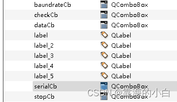然后用QSerialPortInfo::availablePorts()函数搜索可用串口,将串口放入定义的数组中并在ui serialCb显示。(这一步的目的是为串口号属性添加值)