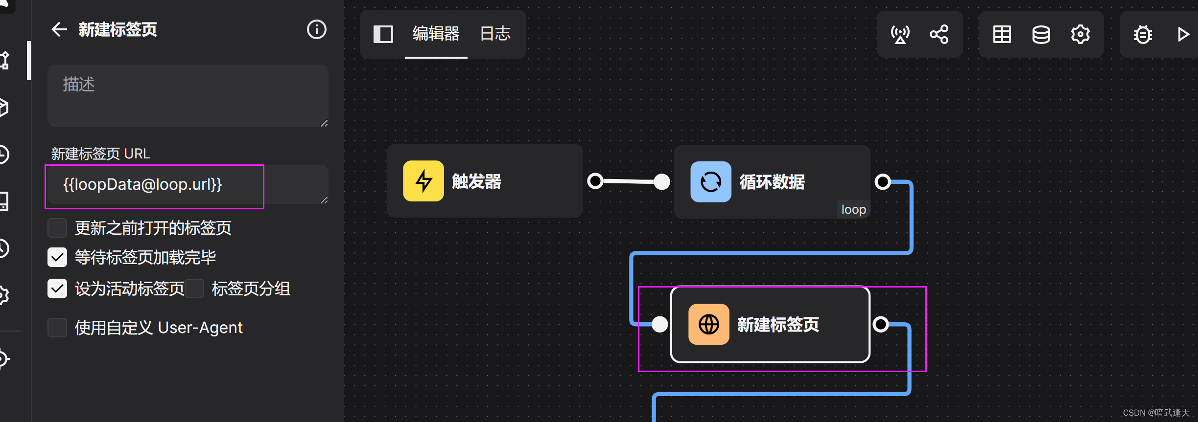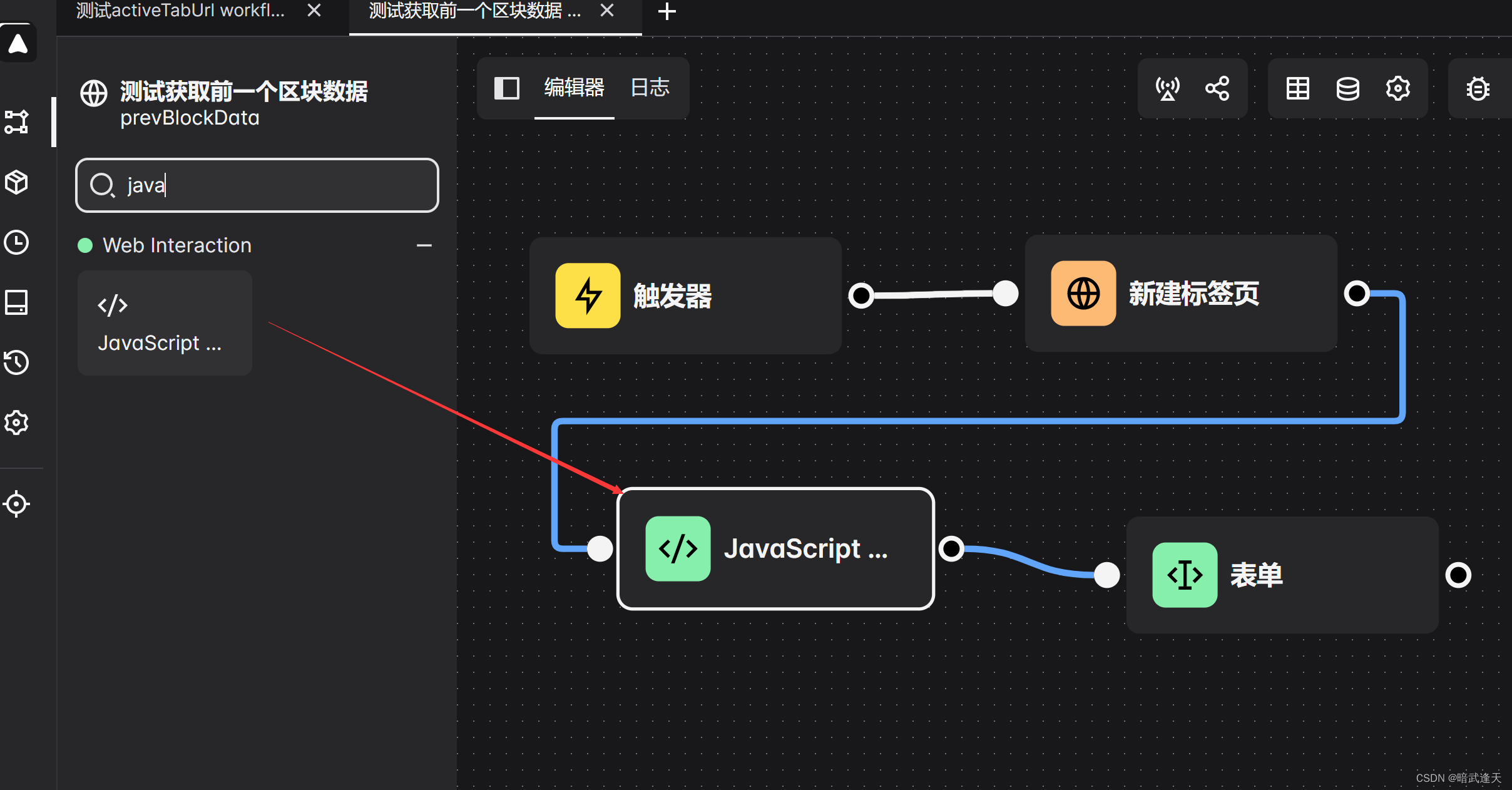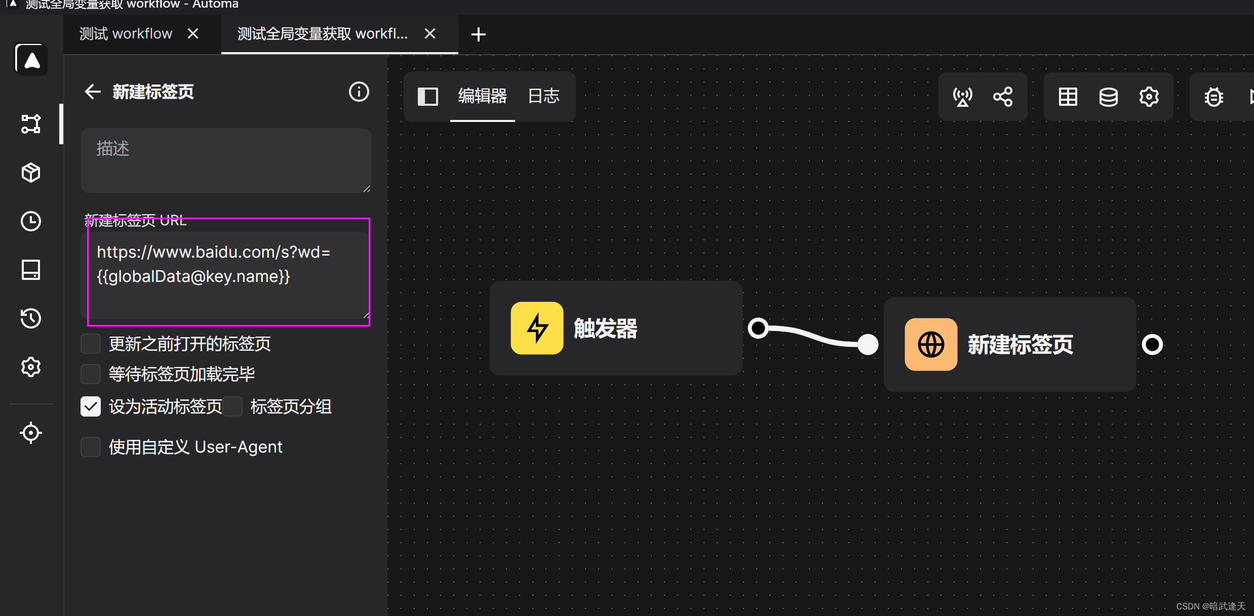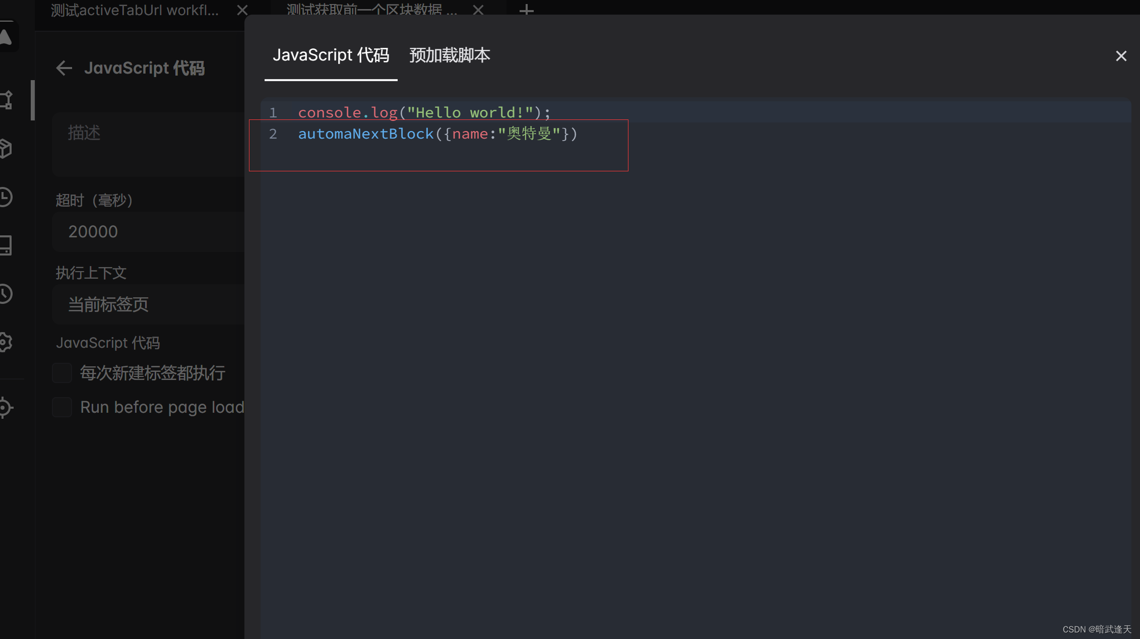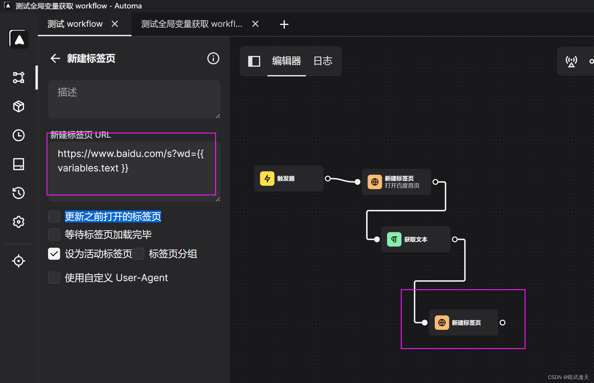 注意此时获取前面获取文本块设置的参数用的也是automa提供的变量表达式