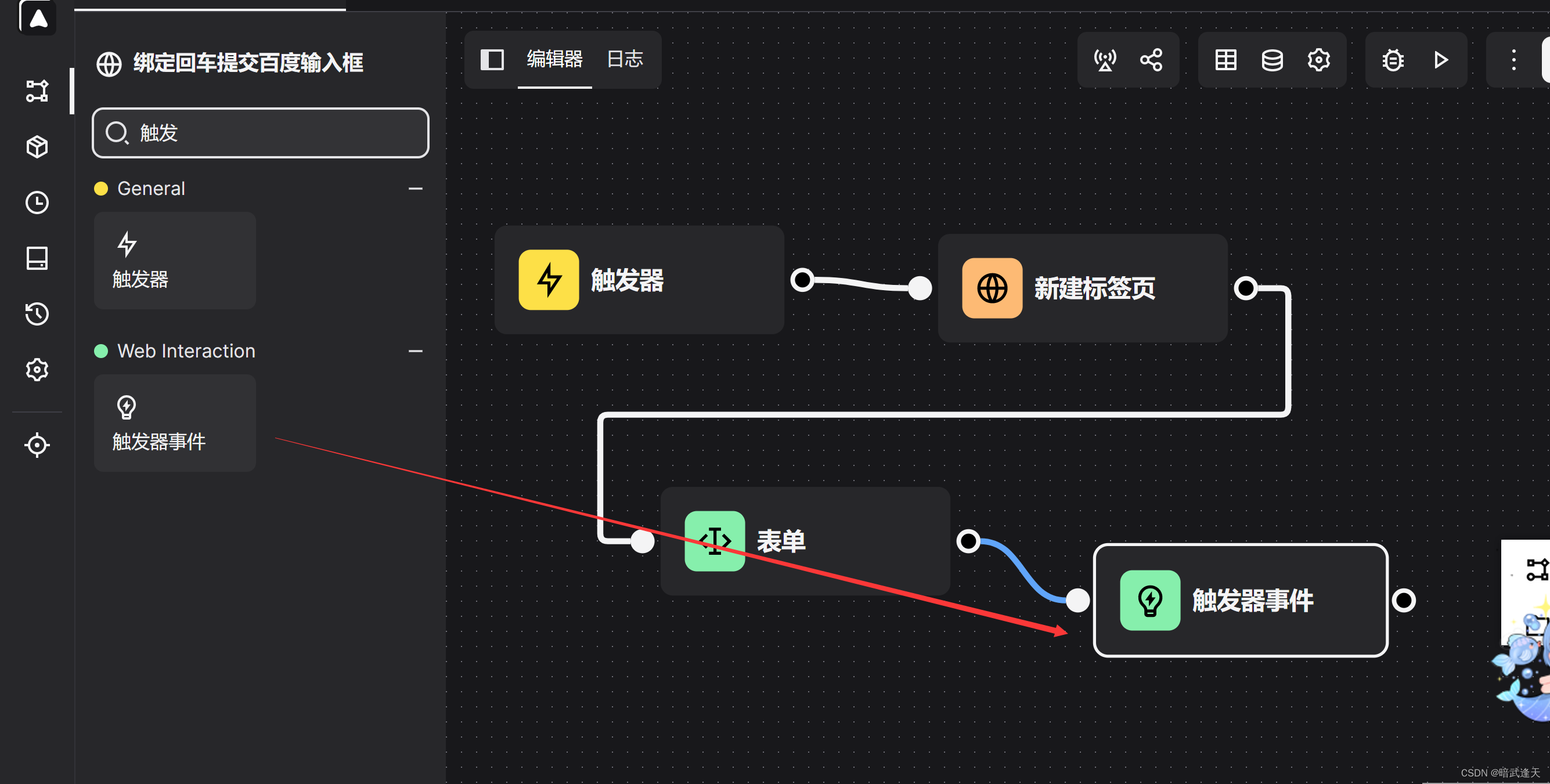 我们平常在输入百度输入框需要搜索内容时习惯直接回车提交表单,automa也是提供这种方式的
