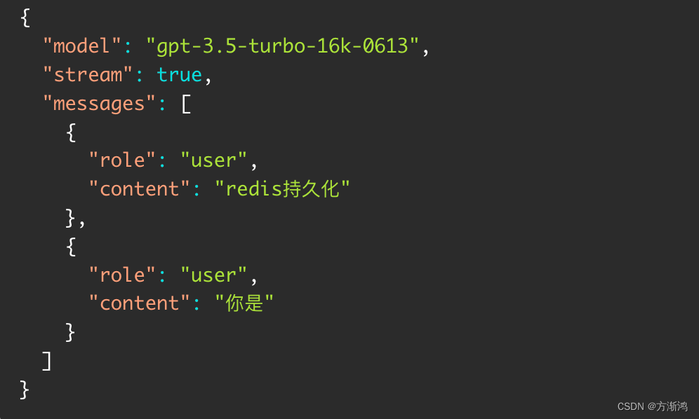 @Data@NoArgsConstructor@AllArgsConstructorpublic class ChatGptRequestParameter { private String model = "gpt-3.5-turbo-16k-0613";// 是否支持流式输出 private boolean stream = true;// 请求对象数组 List<ChatGptMessage> messages=new ArrayList(); public void addMessages(ChatGptMessage message) { this.messages.add(message); }} ChatGptMessage @Data@NoArgsConstructor@AllArgsConstructorpublic class ChatGptMessage implements Serializable { String role; String content;} 2.2.2、响应数据对象