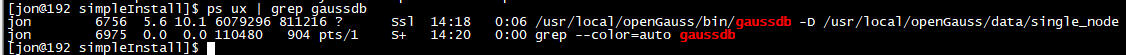 cd /usr/local/openGauss/simpleInstall 执行install.sh脚本安装openGauss,其中-w后面参数为设置数据库密码