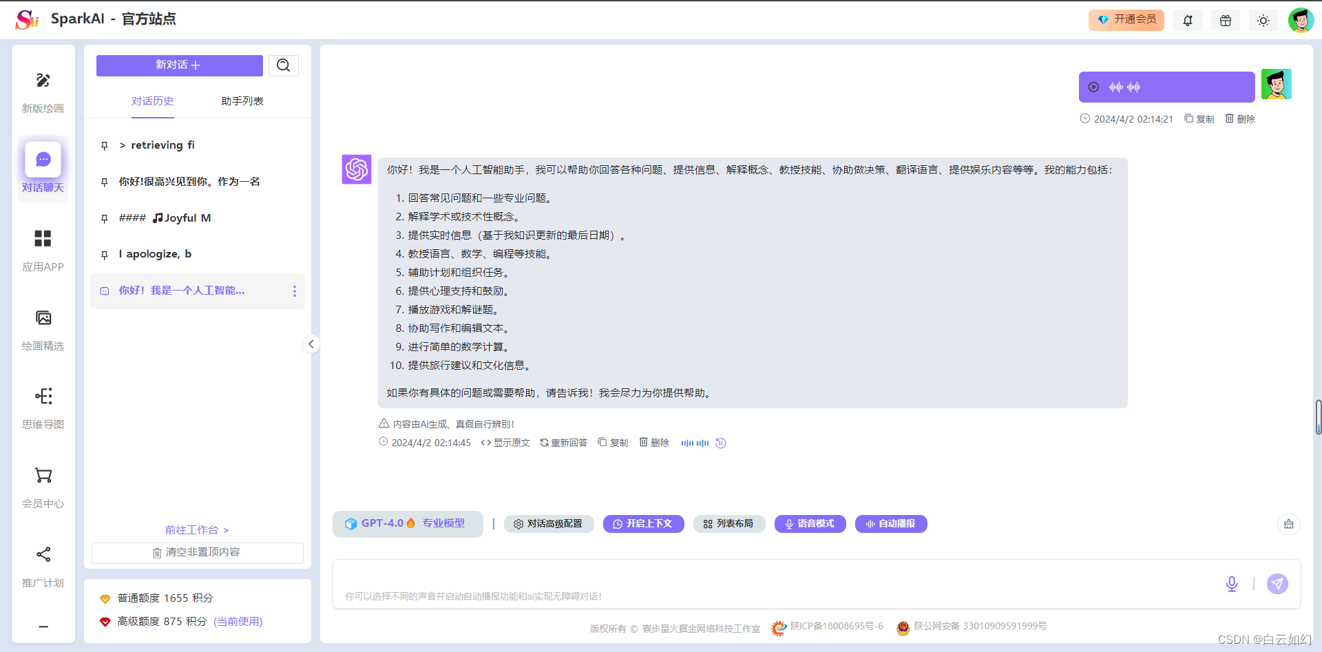 SparkAi创作系统是基于ChatGPT进行开发的Ai智能问答系统和Midjourney绘画系统,支持OpenAI-GPT全模型+国内AI全模型。本期针对源码系统整体测试下来非常完美,那么如何搭建部署AI创作ChatGPT?小编这里写一个详细图文教程吧。已支持GPT语音对话、GPT-4模型、DALL-E3文生图、图片对话能力上传图片,文档分析、Midjourney绘画动态全功能、AI换脸、垫图混图、插件功能、支持最近火爆的Suno-v3-AI音乐生成大模型。