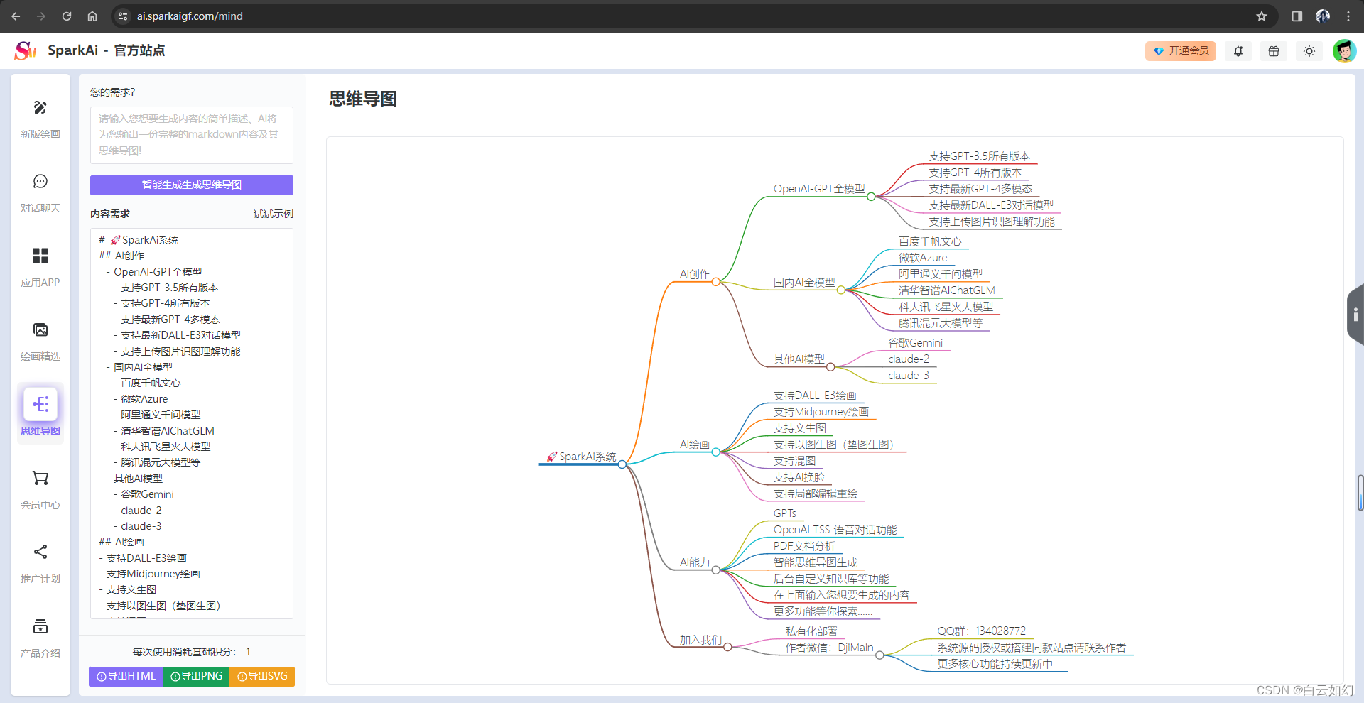 思维导图:一键根据需求生成思维导图,可导出不同类型图片