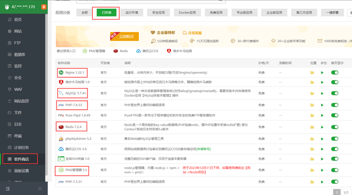 如果安装不上pnpm,是宝塔默认淘宝源已经无法使用,打开命令控制台,切换为官方源,单独安装pnpm模块 先设置npm为官方源: