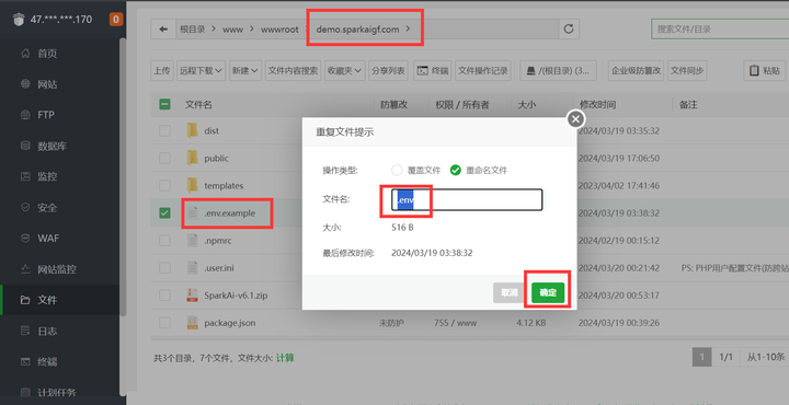 本例中即为 demo.sparkaigf.com/sparkai/admin