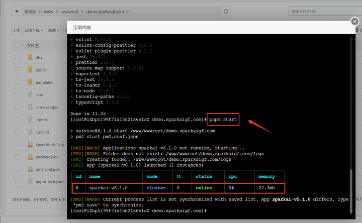 输入 pm2 log 查看详细日志、看到下图表示成功!
