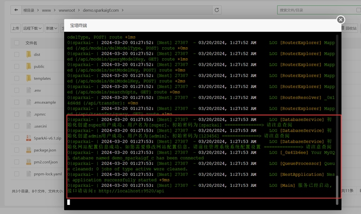 初始化创建super用户成功、用户名为[super]、初始密码为[sparkai]