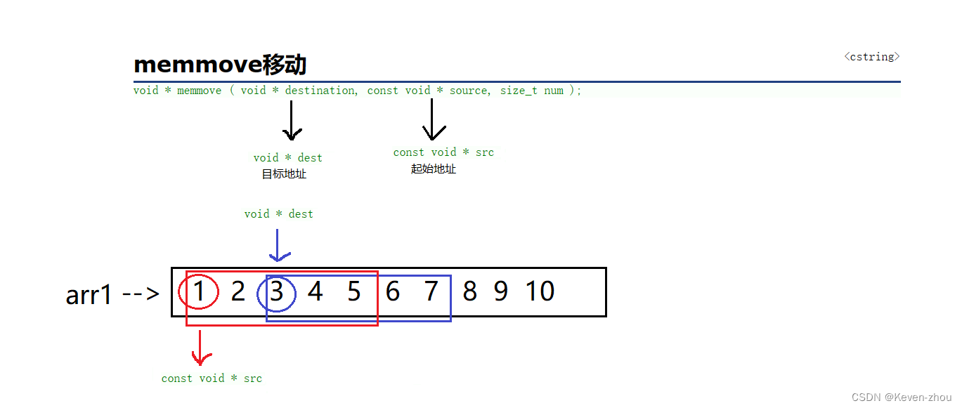 void * memmove ( void * destination, const void * source, size_t num ); 具体的函数介绍如下: