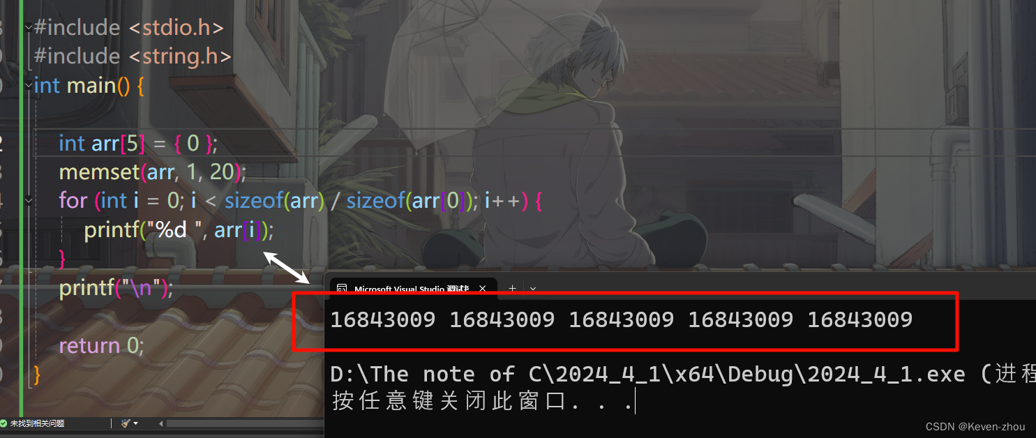 从运行结果来看: 我们发现VS编译器的运行结果是符合我们的预期的,也就是说它把arr2数组中的第七个~第十一个元素全都替换为arr数组中前五个元素。