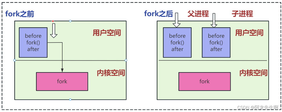 分配新的内存块和内核数据结构给子进程;将父进程部分数据结构内容拷贝至子进程;添加子进程到系统进程列表当中;fork返回,开始调度器调度;所以,fork之前父进程独立执行,fork之后父子两个执行流分别执行。注意:fork之后谁先执行完全由调度器决定。