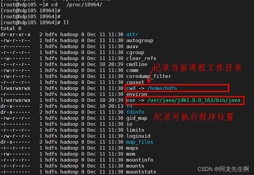 目录名为数字的即为进程信息的目录,每个目录内存储着他们对应的进程信息。而这些数字对应着该进程的标识符PID。如下查看标识符PID=18964的进程信息: