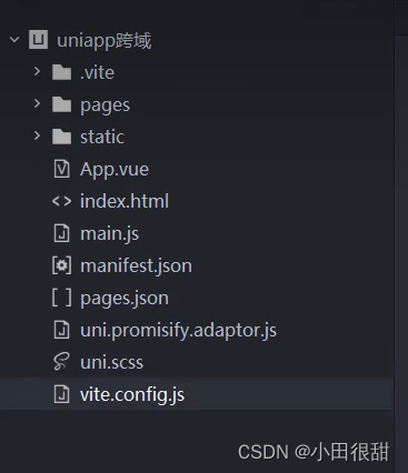 打开HBuilder项目,创建一个新的名为“vite.config.js”的js文件,参考目录结构: