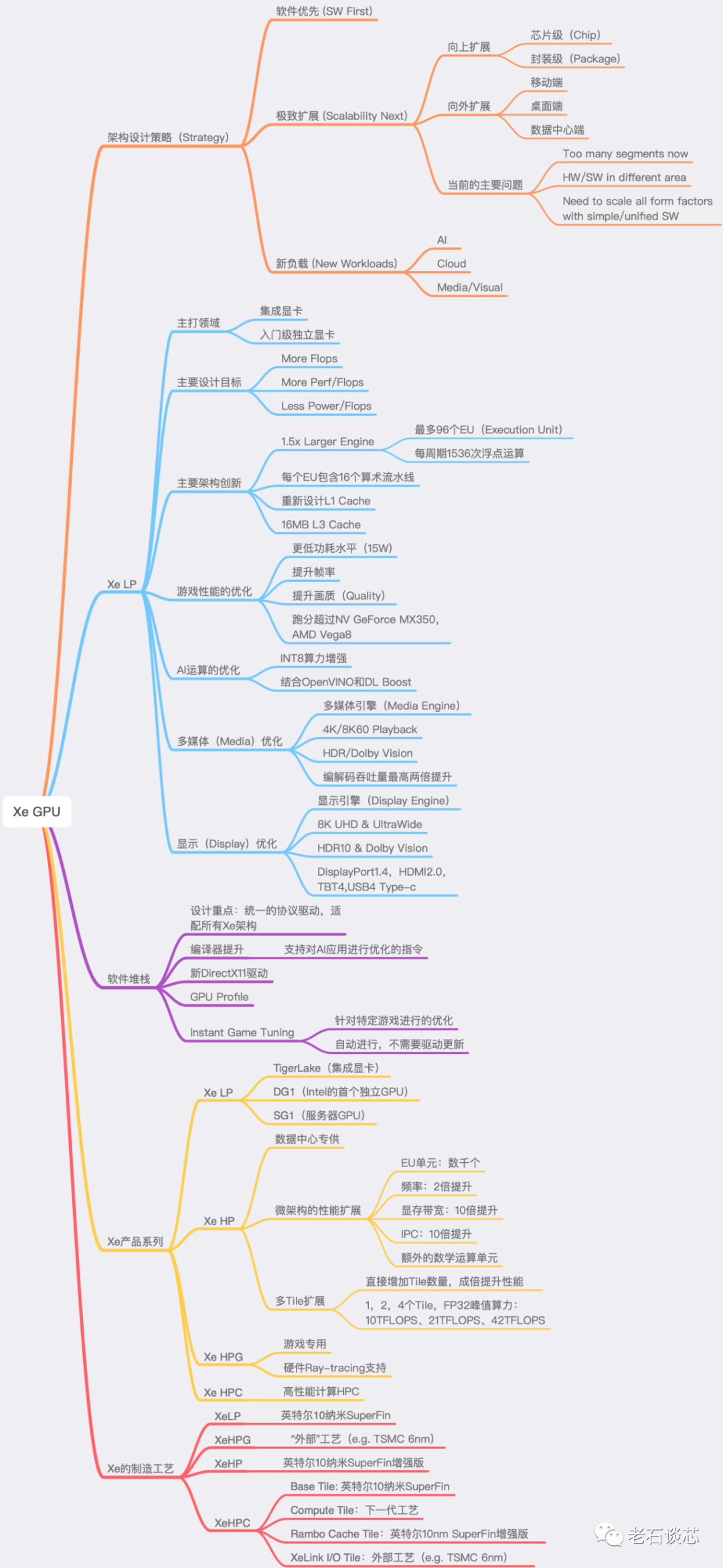 在这篇文章中,我将从硬件架构、软件堆栈、应用场景等领域对Xe GPU进行深入的技术解析。我用思维导图的形式,总结了本文涉及的全部技术要点。