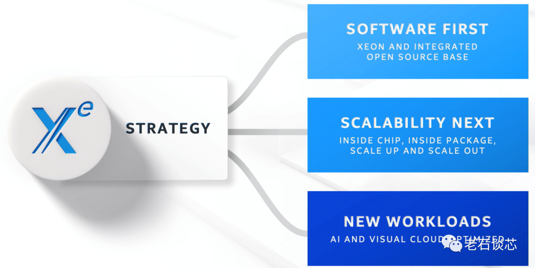 Xe的主要设计思路有三点:软件先行、兼顾扩展、全新应用。这表明Xe并非是作为一个孤立的产品出现,而是会结合英特尔完整的硬件产品组合、以及统一的软件开发环境而协同设计。Raja多次强调,希望使用相同的软件栈、相同的微架构设计,实现多个Xe产品的快速扩展,这在后面的文章中也会多次提及。
