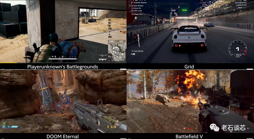 XeLP主要的市场定位是集成显卡以及入门级独立显卡。即便如此,XeLP也对游戏性能进行了针对性的优化。下面就是一些在XeLP上运行的游戏截图,例如,XeLP可以支持战地5在1080p、30FPS和特效全开时的流畅运行。