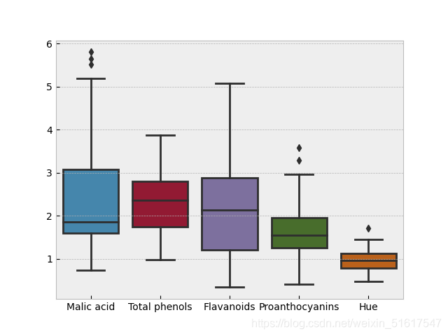 wine_BV=wine.loc[:,['Malic acid','Total phenols','Flavanoids','Proanthocyanins','Hue']]