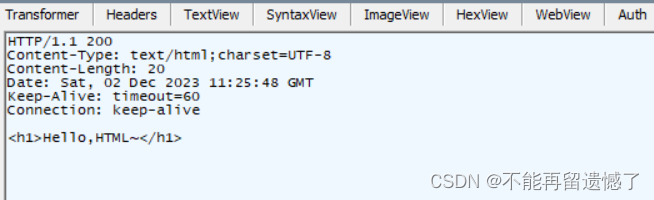 而我们使用浏览器访问的话,使用 Fiddler 抓包可以观察到响应的数据的类型是 html 类型。