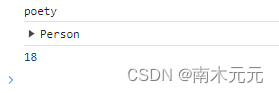 function myNew(constructor, ...args) { // 如果不是一个函数,就报错 if (typeof constructor !== "function") { throw "myNew function the first param must be a function"; } // 基于原型链 创建一个新对象,继承构造函数constructor的原型对象上的属性 let newObj = Object.create(constructor.prototype); // 将newObj作为this,执行 constructor ,传入参数 let res = constructor.apply(newObj, args); // 判断函数的执行结果是否是对象,typeof null 也是'object'所以要排除null let isObject = typeof res === "newObject" && res !== null; // 判断函数的执行结果是否是函数 let isFunction = typeof res === "function"; // 如果函数的执行结果是一个对象或函数, 则返回执行的结果, 否则, 返回新创建的对象 return isObject || isFunction ? res : newObj;}// 用法function Person(name, age) { this.name = name; this.age = age; // 如果构造函数内部,return 一个引用类型的对象,则整个构造函数失效,而是返回这个引用类型的对象}Person.prototype.say = function() { console.log(this.age);};let p1 = myNew(Person, "poety", 18);console.log(p1.name);//poetyconsole.log(p1);//Person {name: 'poety', age: 18}p1.say();//18 测试结果: