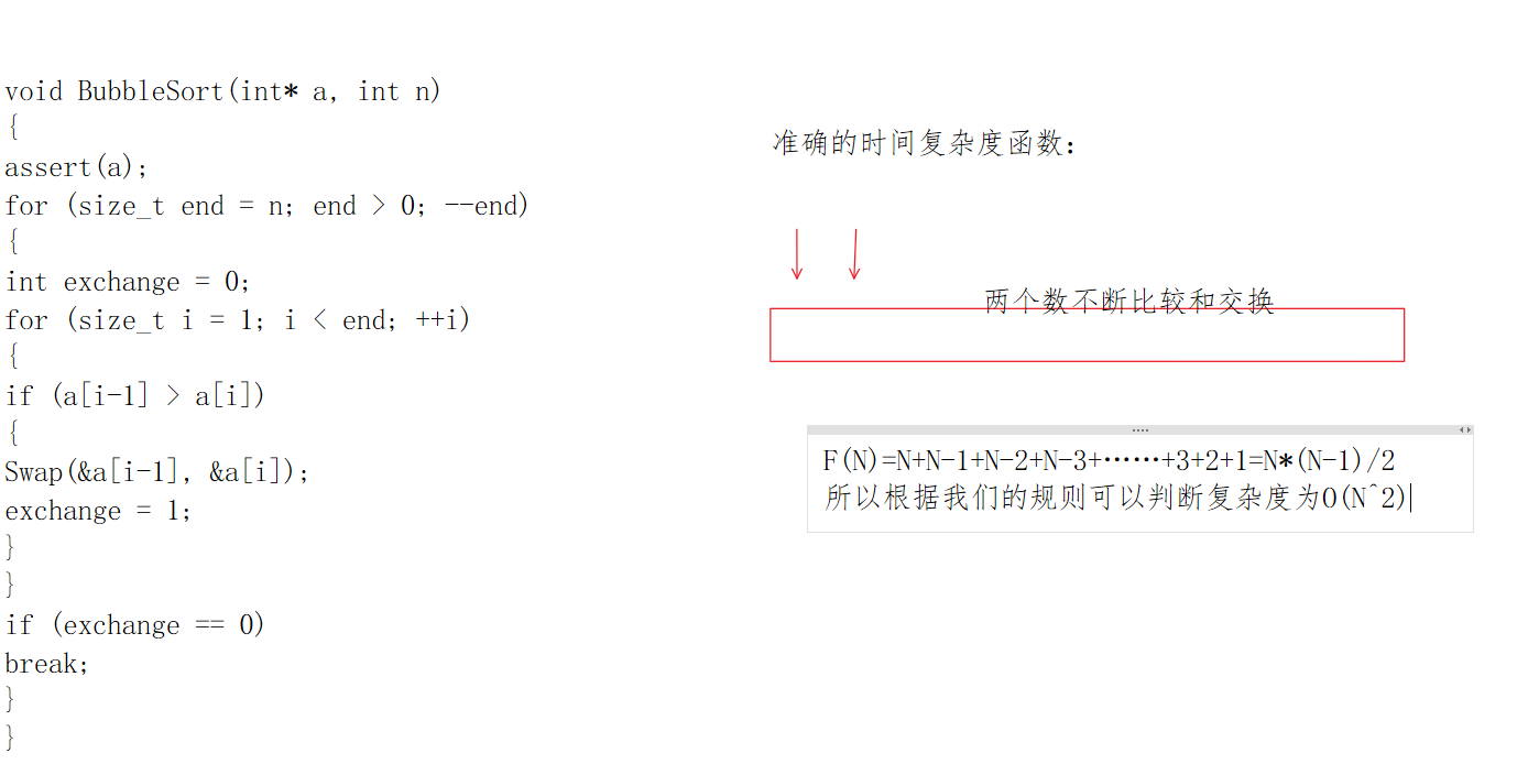 我们对于冒泡排序的思想都已经很熟悉了,那么冒泡排序的复杂度又该如何计算呢?我们来分析一下: