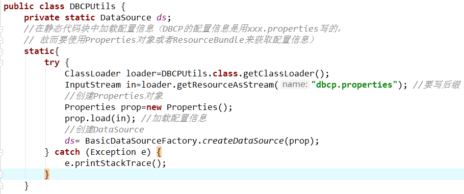 DataSource ds=BasicDataSourceFactory.createDataSource(prop); - 获取Connection: