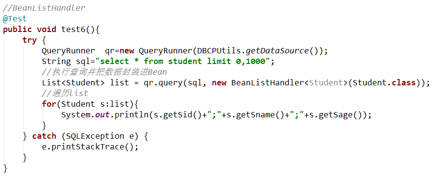 new BeanListHandler<T>(T.class)把查询的数据集(可以有很多条数据)封装到Bean对象中。