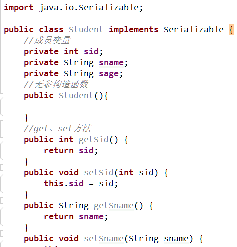 实现java.io.Serializable接口;提供成员变量(私有字段)private 数据类型 变量名;提供无参构造函数;提供get/set方法。