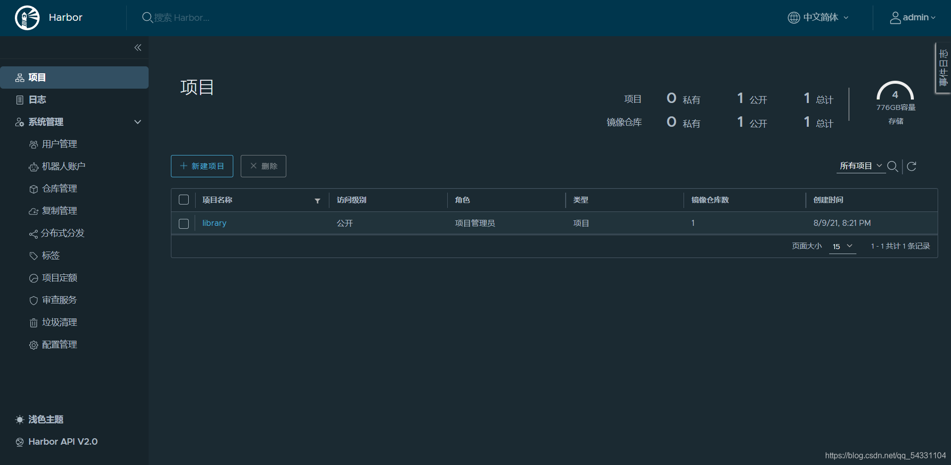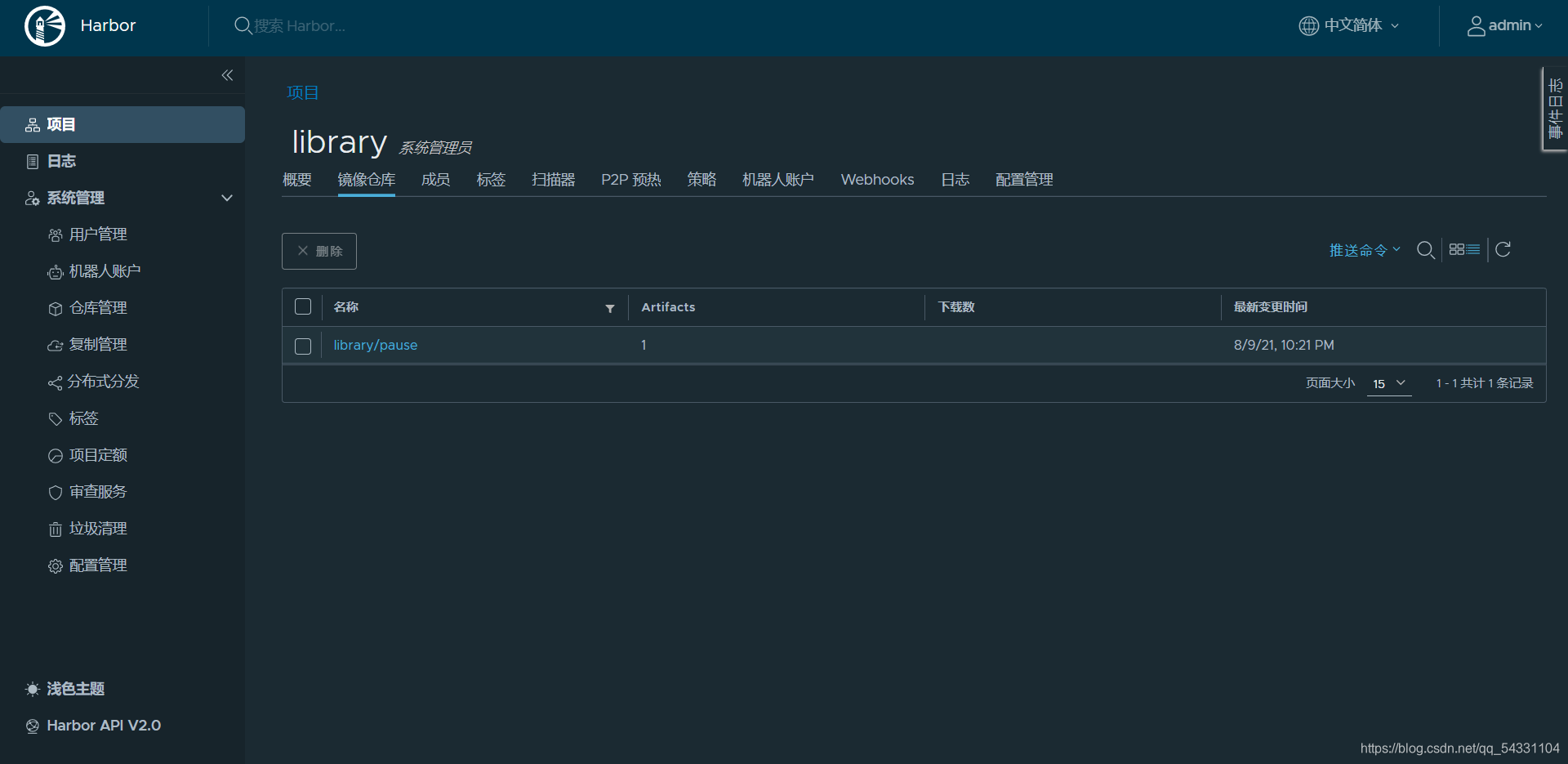 最后一步:检查镜像。 我们在harbor的library中检查我们的镜像是否上传成功。