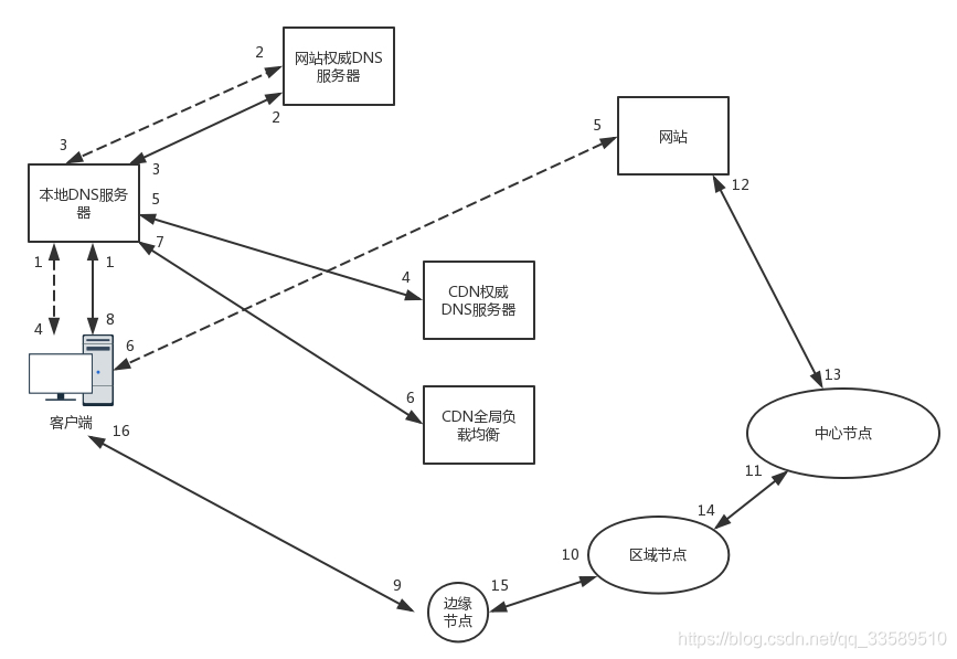 无CDN时:用户向浏览器输入www.web.com域名后,客户端访问本地DNS服务器时,若本地DNS服务器: