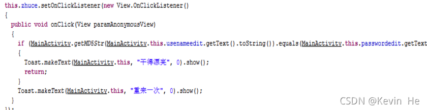 2. 伪Java中寻找关键代码,其跳转关键句在if..else语句,其中调用了getMD5str()函数,要搞定这个CrackMe需了解该函数。
