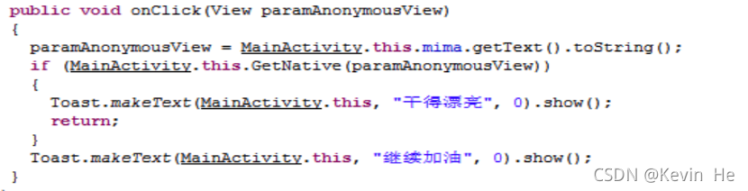 1. Android Killer中打开:将APK反编译为Smali代码,可以看到主要逻辑在MainActivity.smali中,再将其转换为伪Java代码。