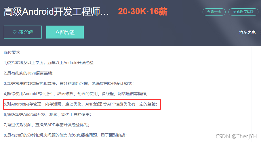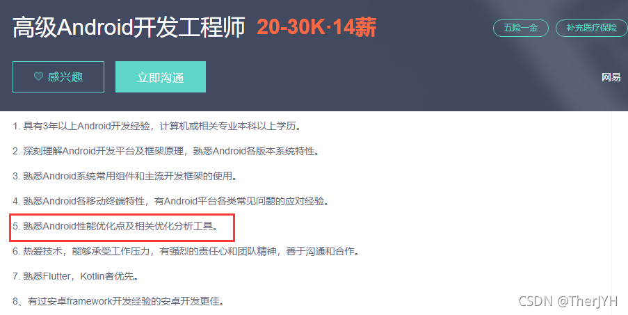 从一线互联网大厂的招聘信息中,可以了解到,熟悉Androi性能优化你将众多的竞争者中脱颖而出,成为你面试上岗的一重大杀器。