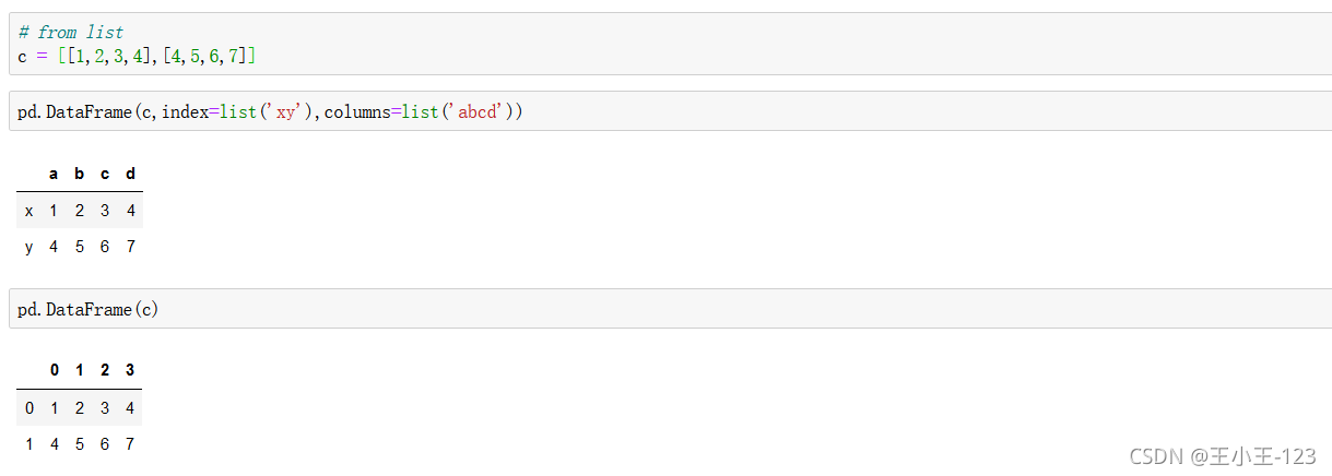 我们也可以将一个numpy装换为dataframe类型,也就是我们的二维数据表