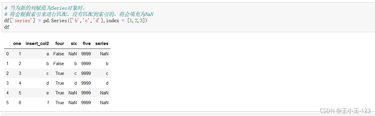 会根据索引来进行匹配,没有匹配到索引的,将会填充为NaN